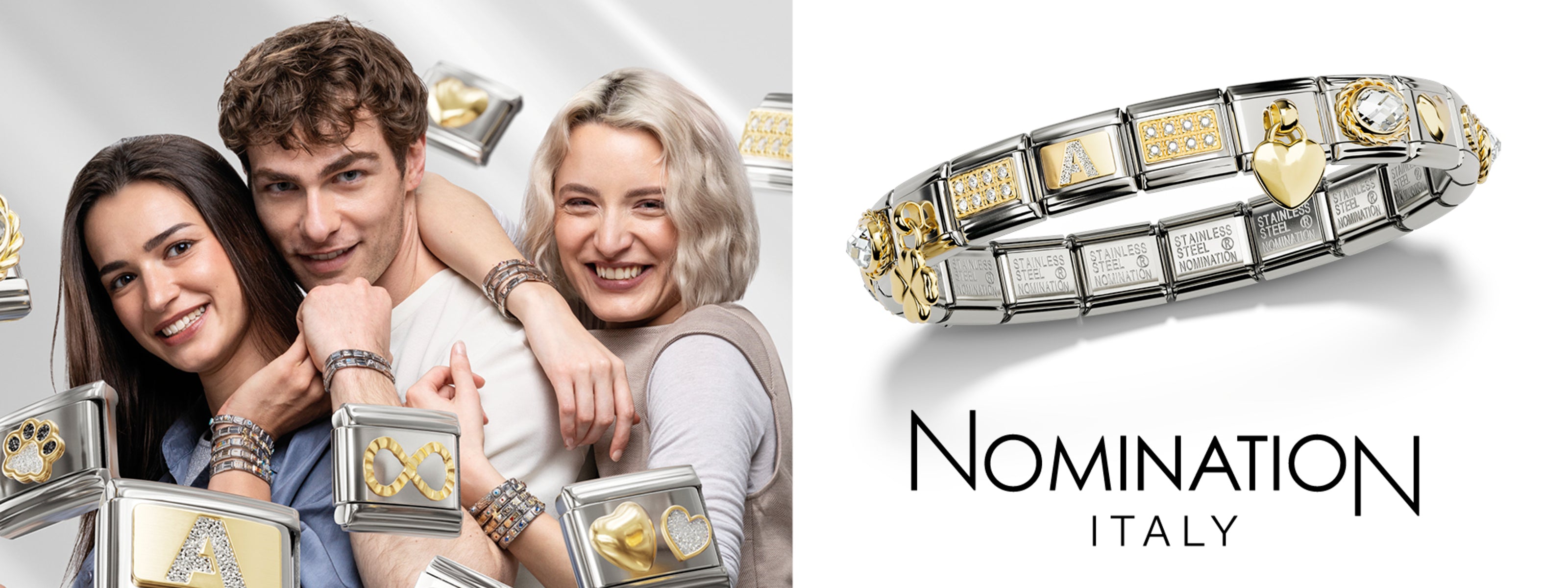 Nomination is a renowned Italian jewellery brand celebrated for its innovative modular design. Each piece is handcrafted with precision and creativity, allowing you to compose your own bracelet by combining stainless steel links, solid gold charms, and gemstones. Every Nomination creation tells a personal story — a reflection of your memories, passions, and style.