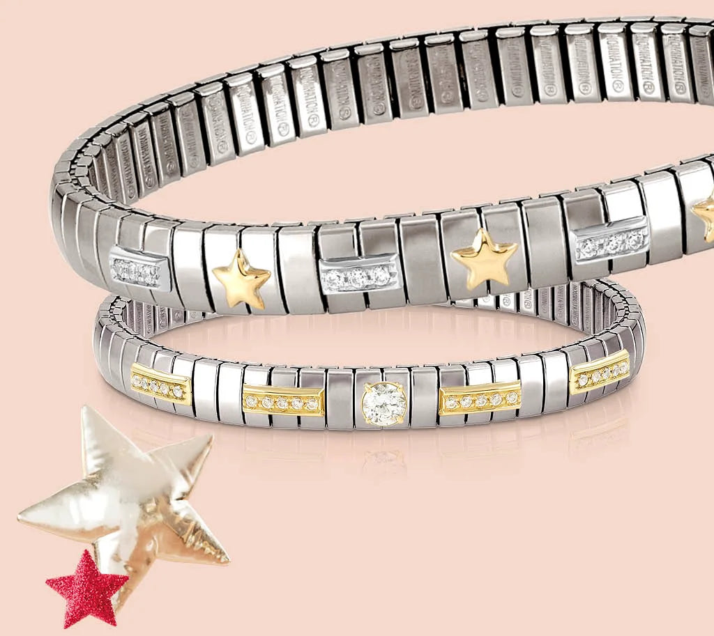 Nomination is a renowned Italian jewellery brand celebrated for its innovative modular design. Each piece is handcrafted with precision and creativity, allowing you to compose your own bracelet by combining stainless steel links, solid gold charms, and gemstones. Every Nomination creation tells a personal story — a reflection of your memories, passions, and style.