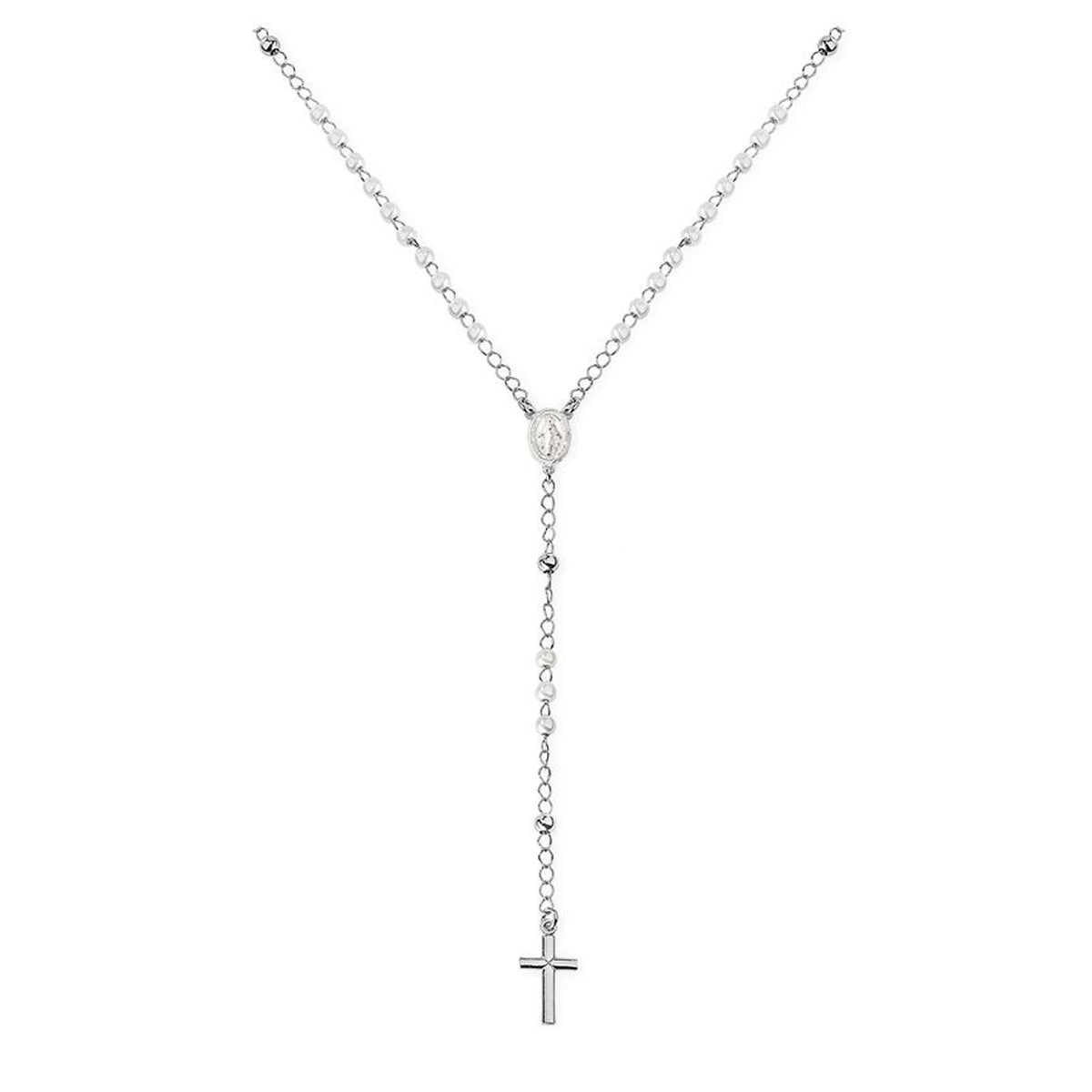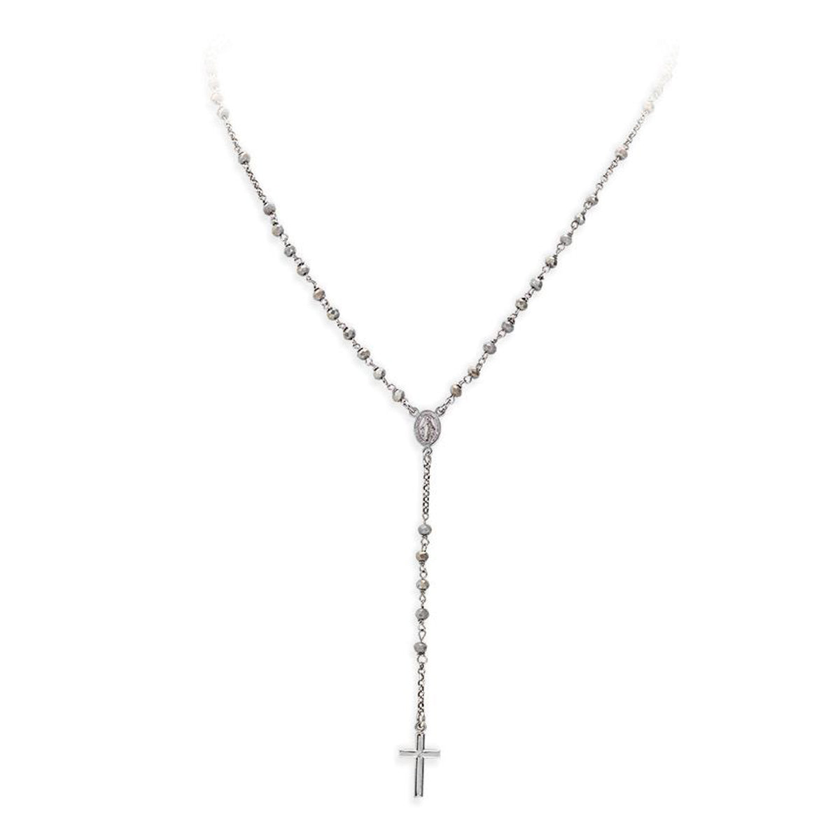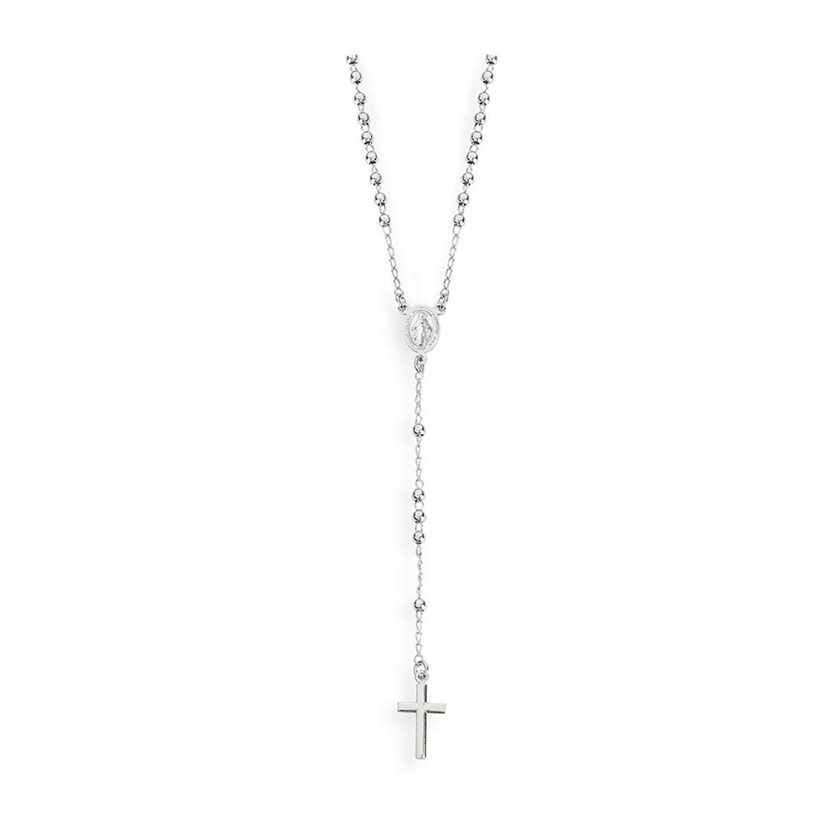 AMEN RHODIUM ROSARY PLAIN NECKLACE CROBB4
