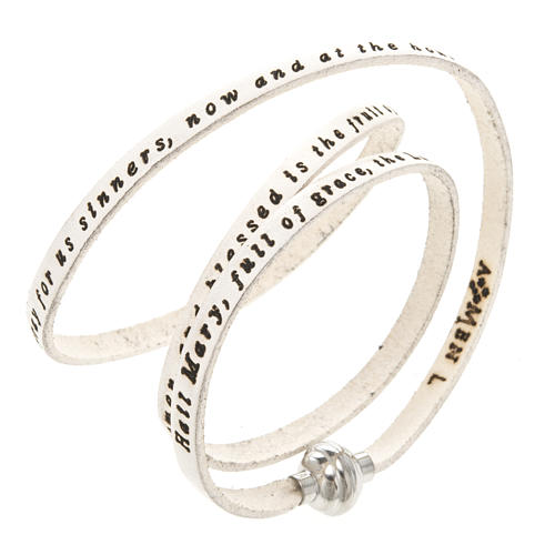 Amen Leather Prayer Bracelet Hail Mary White Small AMEN0754