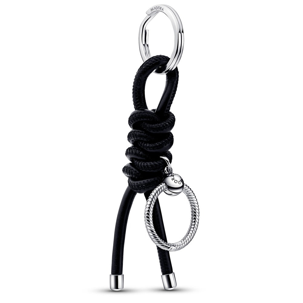 Pandora Sterling silver keyring with black leather-fr 392260C01